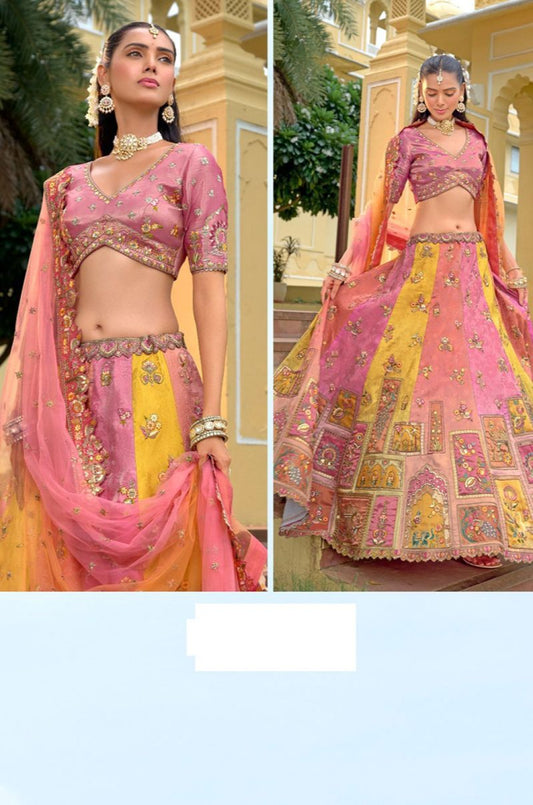 Regular price From £266.70 GBPRegular priceUnit price / per£379.90 GBPSale price From £266.70 GBP-29% OFFPink Silk Bridal Wedding Lehenga Choli SFSA507908