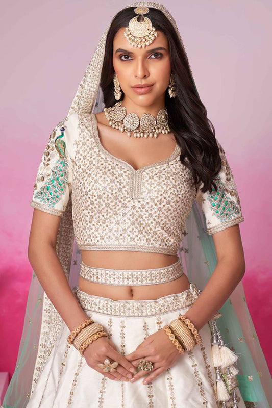 Regular price From £91.90 GBPRegular priceUnit price / per£145.15 GBPSale price From £91.90 GBP-36% OFFCream Wedding Lehenga Choli In Silk SFROY522444