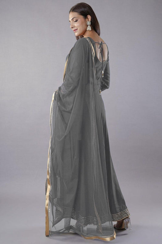 Regular price From £107.36 GBPRegular priceUnit price / perSale price From £107.36 GBPGrey Designer Anarkali Suit Gown In Rayon Georgette SFMAN59508R