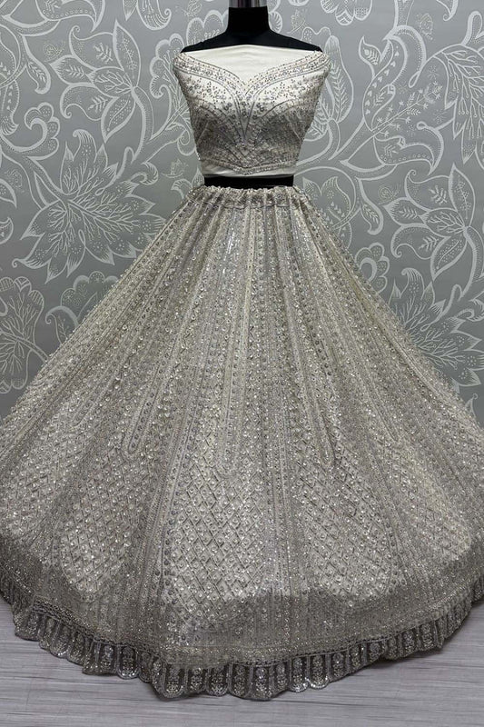 Regular price From £205.95 GBPRegular priceUnit price / per£240.62 GBPSale price From £205.95 GBP-14% OFFWhite Net Designer Party Lehenga Choli SFANJ2957