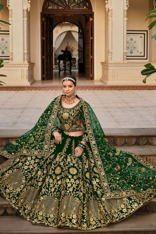 Regular price From £290.50 GBPRegular priceUnit price / per£331.68 GBPSale price From £290.50 GBP-12% OFFGreen Velvet Bridal Lehenga Choli Stone Work SFSA484602