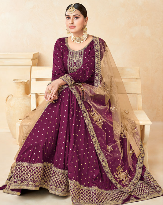 Regular price From £145.17 GBPRegular priceUnit price / per£155.15 GBPSale price From £145.17 GBP-6% OFFPurple Bridal Plus Size Anarkali Suit In Net SFDFS15103