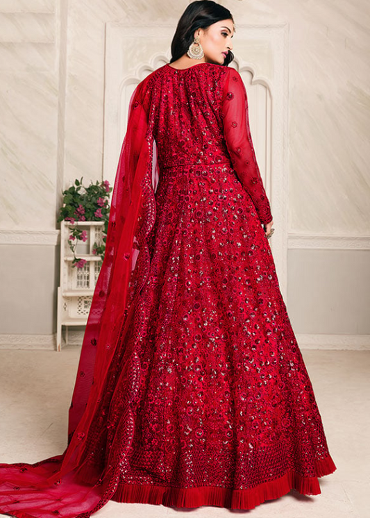 Regular price From £145.17 GBPRegular priceUnit price / per£155.15 GBPSale price From £145.17 GBP-6% OFFRed Bridal Plus Size Anarkali Suit In Net SFDFS15104