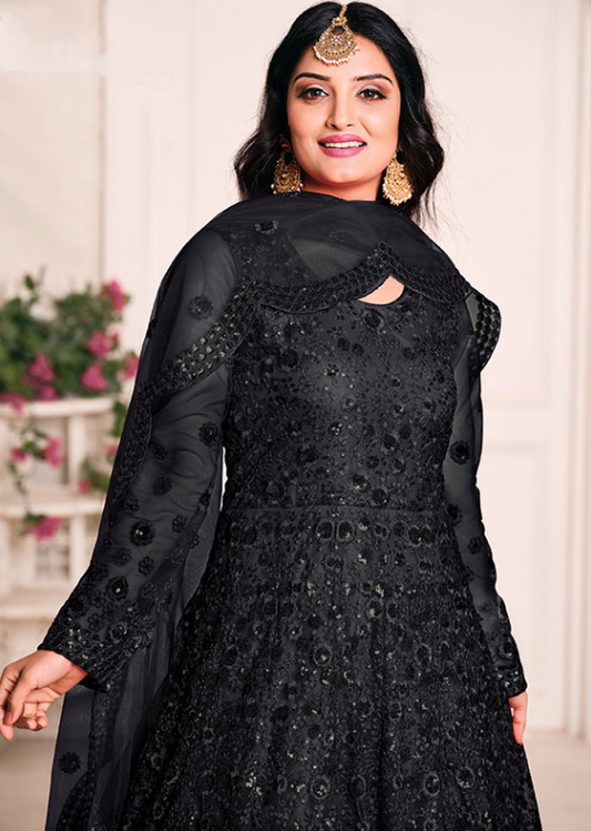 Regular price From £105.15 GBPRegular priceUnit price / per£155.15 GBPSale price From £105.15 GBP-32% OFFBlack Bridal Plus Size Anarkali Suit In Net SFDFS15101