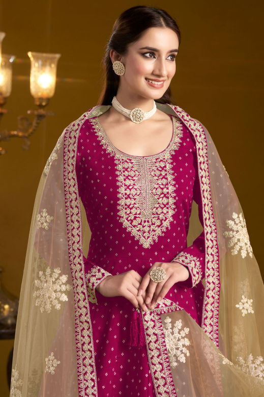 Regular price From £105.15 GBPRegular priceUnit price / per£155.15 GBPSale price From £105.15 GBP-32% OFFPink Plus Size Anarkali Suit In Chanderi Silk SFDFS31604