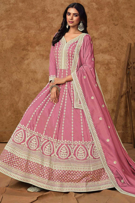 Regular price £156.68 GBPRegular priceUnit price / per£175.62 GBPSale price £156.68 GBP-10% OFFPink Dola Silk Anarkali Suit Sequins Embroidery Work SFDFS33401R