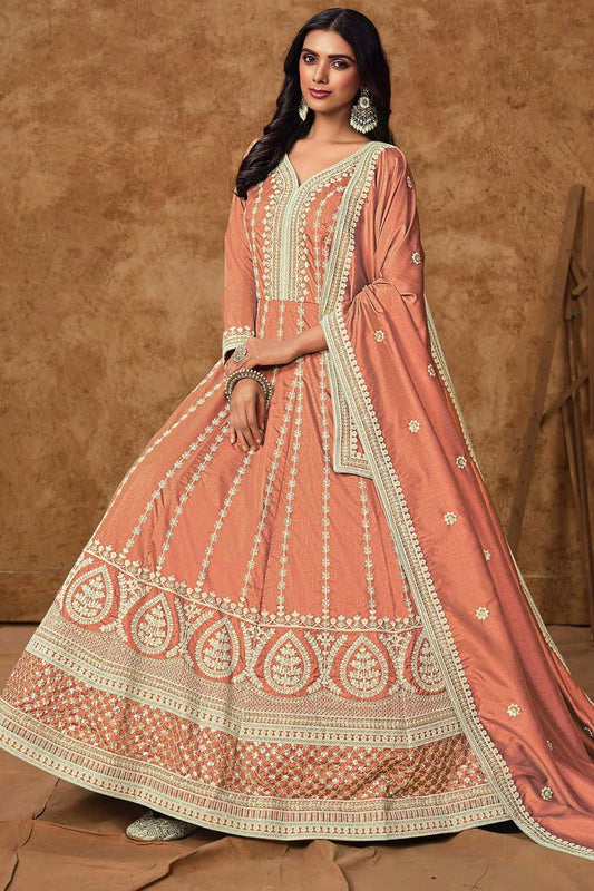 Regular price £156.68 GBPRegular priceUnit price / per£175.62 GBPSale price £156.68 GBP-10% OFFOrange Dola Silk Anarkali Suit Sequins Embroidery Work SFDFS33404R