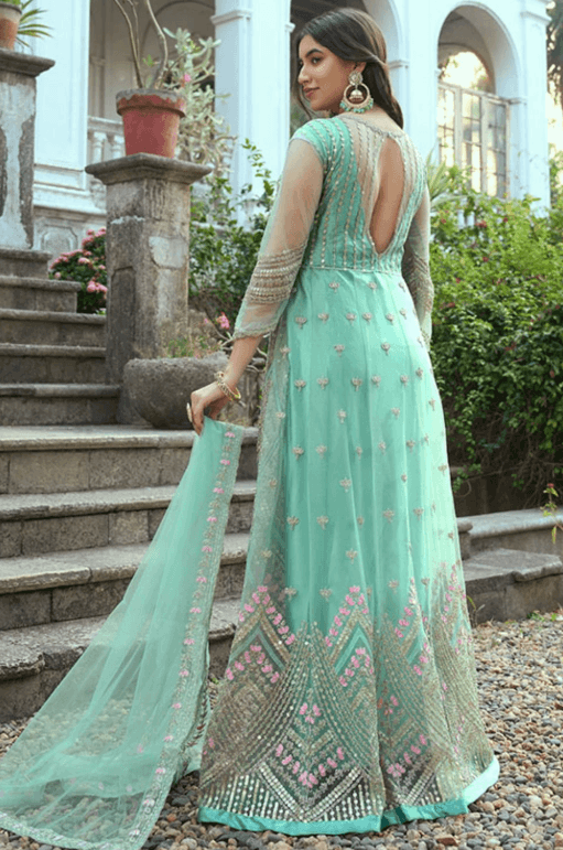 Regular price From £136.70 GBPRegular priceUnit price / per£175.73 GBPSale price From £136.70 GBP-22% OFFGreen Bridal Reception Anarkali Suit Gown In Net SFSMT10202