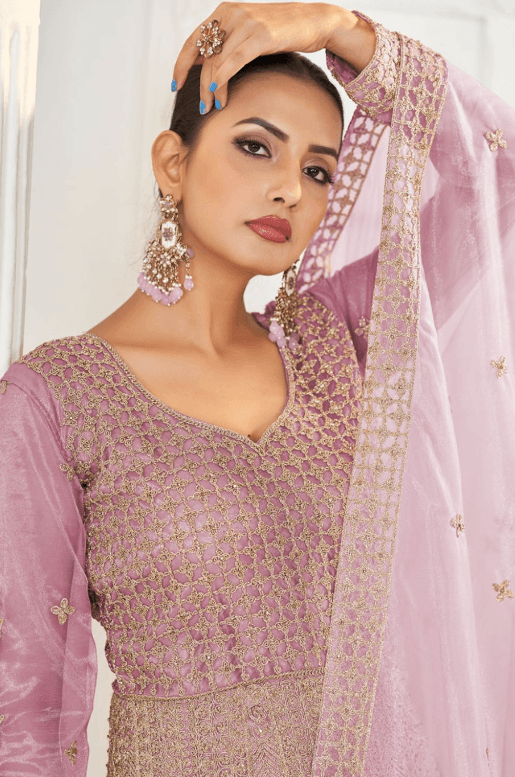 Pink Bridal Reception Anarkali Suit Gown In Net SFSA485702