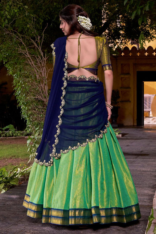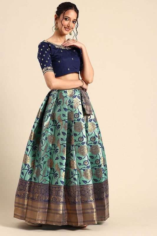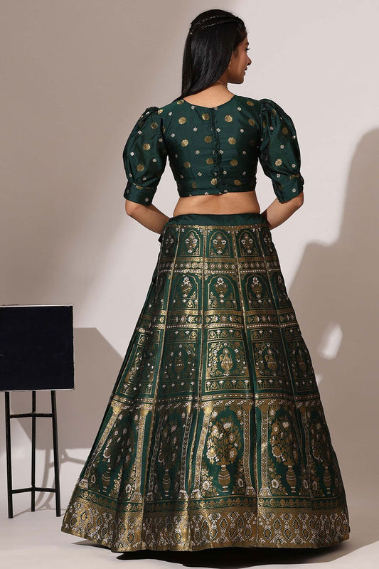 Regular price From £79.66 GBPRegular priceUnit price / per£95.89 GBPSale price From £79.66 GBP-16% OFFGreen Jacquard Navratri Lehenga Choli In Zari Work SFROY537101