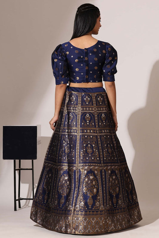 Regular price From £82.98 GBPRegular priceUnit price / per£114.90 GBPSale price From £82.98 GBP-27% OFFBlue Jacquard Navratri Lehenga Choli In Zari Work SFROY537102