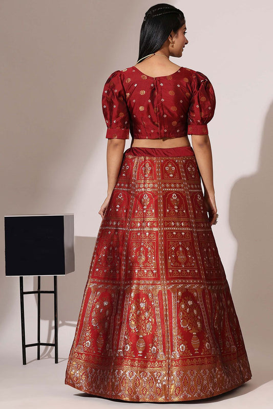 Regular price From £82.98 GBPRegular priceUnit price / per£114.90 GBPSale price From £82.98 GBP-27% OFFMaroon Jacquard Navratri Lehenga Choli In Zari Work SFROY537103