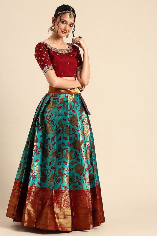 Regular price £73.87 GBPRegular priceUnit price / per£126.90 GBPSale price £73.87 GBP-41% OFFTurquoise Silk Navratri Lehenga Choli SFNPV66001R