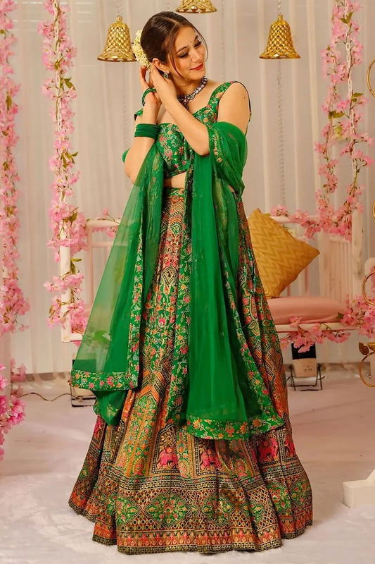 Regular price From £80.72 GBPRegular priceUnit price / per£125.90 GBPSale price From £80.72 GBP-35% OFFGreen Silk Navratri Lehenga Choli In Silk SFROY550701
