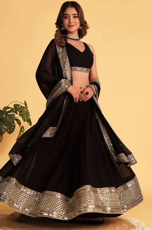 Regular price From £103.14 GBPRegular priceUnit price / per£219.57 GBPSale price From £103.14 GBP-53% OFFBlack Georgette Lehenga Choli - SFROY493001