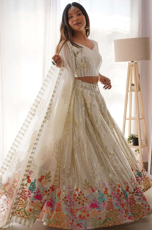 Regular price From £106.95 GBPRegular priceUnit price / per£219.57 GBPSale price From £106.95 GBP-51% OFFWhite Georgette Lehenga Choli - SFROY542401