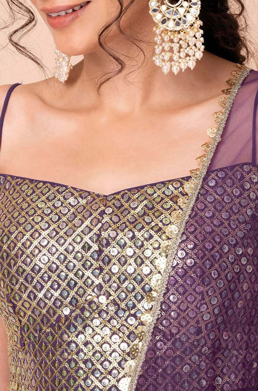 Regular price From £112.35 GBPRegular priceUnit price / per£219.57 GBPSale price From £112.35 GBP-48% OFFPurple Georgette Lehenga Choli - SFZC4205