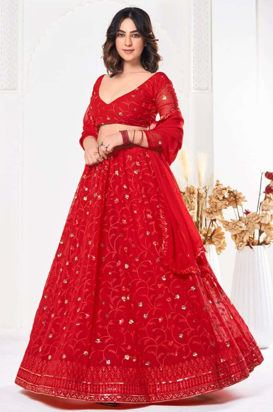 Regular price From £99.18 GBPRegular priceUnit price / per£219.57 GBPSale price From £99.18 GBP-54% OFFRed Georgette Lehenga Choli - SFPRF229203