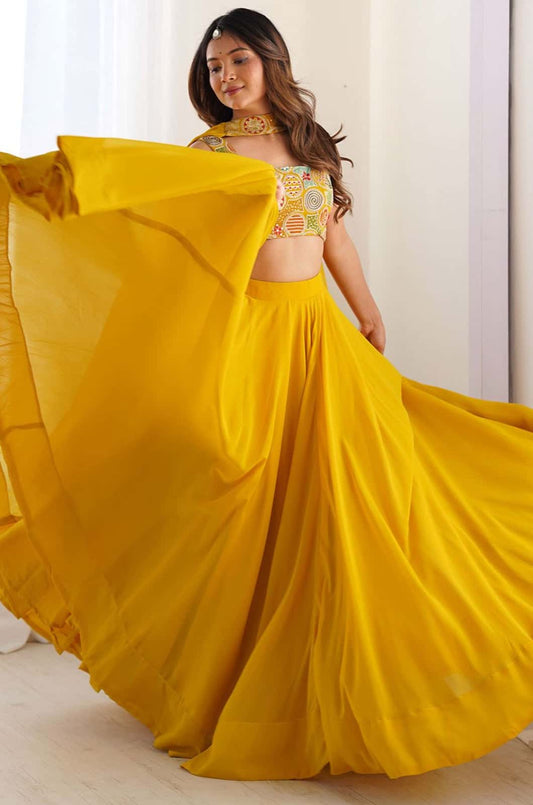 Regular price From £92.61 GBPRegular priceUnit price / per£219.57 GBPSale price From £92.61 GBP-57% OFFYellow Georgette Lehenga Choli - SFROY487202
