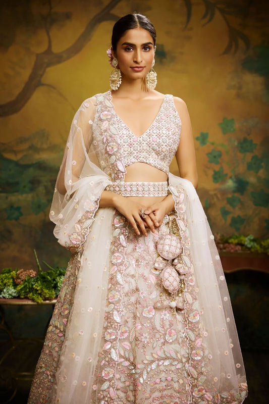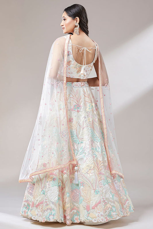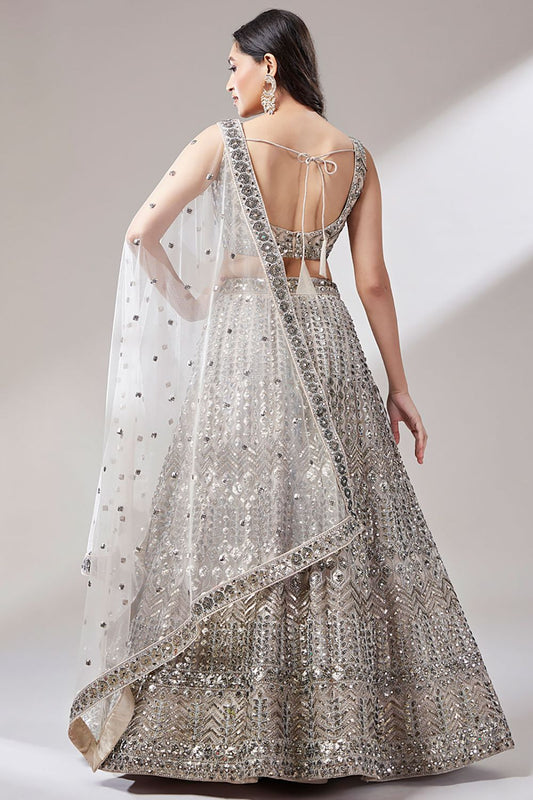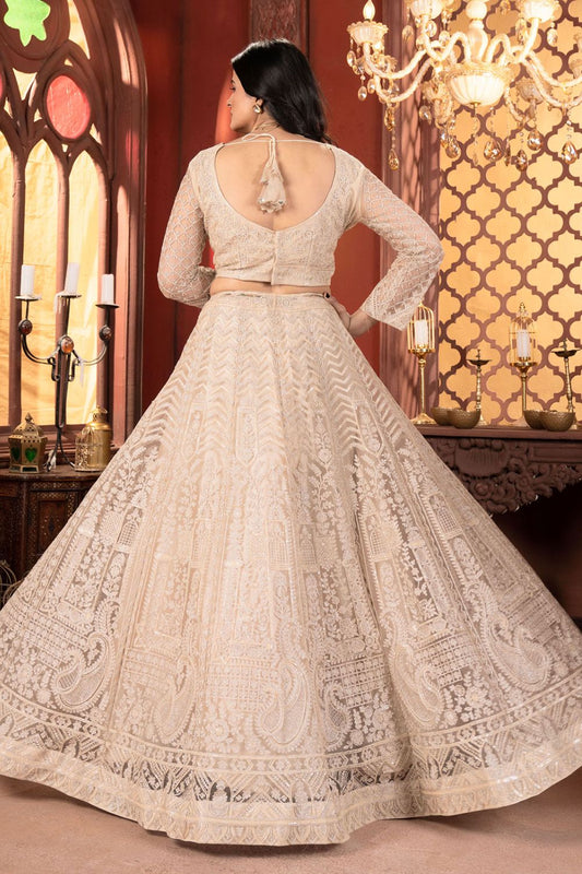 Beige Net Lehenga Choli With Zari And Resham Work SFRELS3811