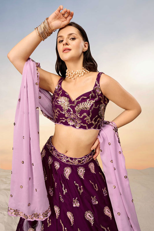 Regular price From £193.30 GBPRegular priceUnit price / per£215.14 GBPSale price From £193.30 GBP-10% OFFPurple Georgette Engagement Lehenga Choli SFROY522412