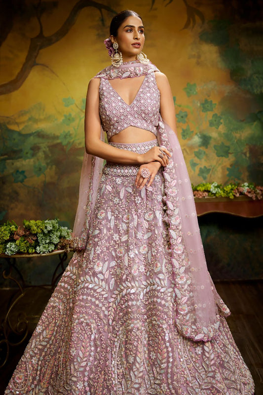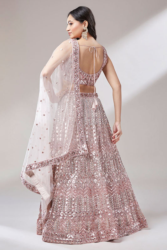 Regular price From £153.41 GBPRegular priceUnit price / per£190.49 GBPSale price From £153.41 GBP-19% OFFPink Net Wedding Lehenga Choli Zarkan Work SFROY522429