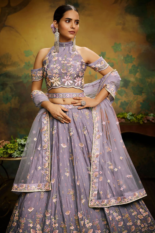 Regular price From £137.05 GBPRegular priceUnit price / per£165.67 GBPSale price From £137.05 GBP-17% OFFPurple Cocktail Evening Net Lehenga Choli SFROY522403