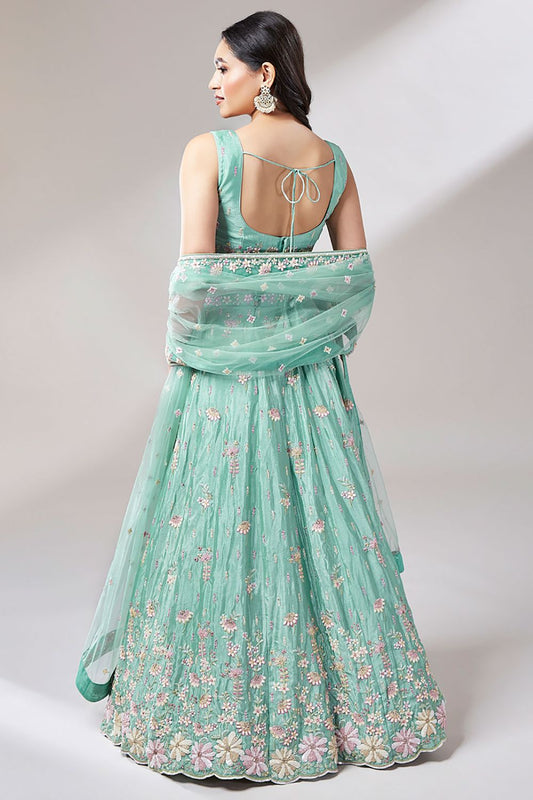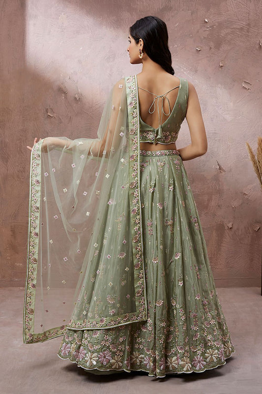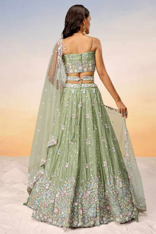 Regular price From £149.43 GBPRegular priceUnit price / per£165.67 GBPSale price From £149.43 GBP-9% OFFGreen Cocktail Evening Net Lehenga Choli SFROY522406