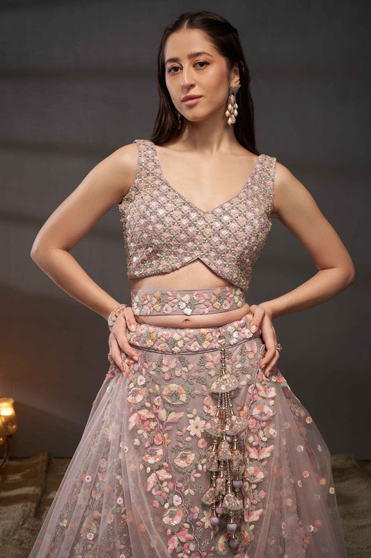 Regular price From £132.46 GBPRegular priceUnit price / per£165.67 GBPSale price From £132.46 GBP-20% OFFPink Cocktail Evening Net Lehenga Choli SFROY522408