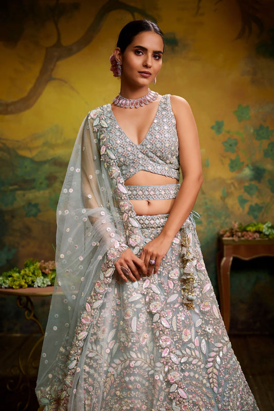 -22% OFFBlue Net Lehenga Choli SFRELS3812