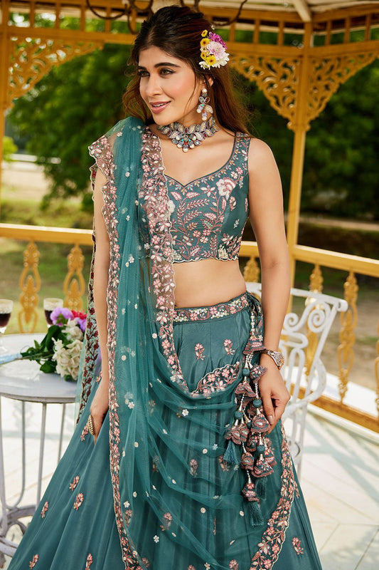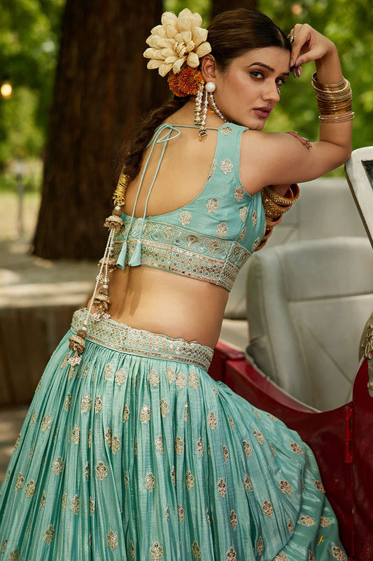 Regular price From £134.63 GBPRegular priceUnit price / per£164.63 GBPSale price From £134.63 GBP-18% OFFTurquoise Satin Silk Party Lehenga Choli SFFK28803