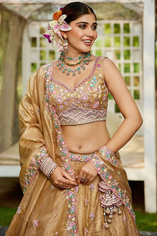 Regular price From £134.63 GBPRegular priceUnit price / per£164.63 GBPSale price From £134.63 GBP-18% OFFBeige Tissue Wedding Party Lehenga Choli SFFK28901