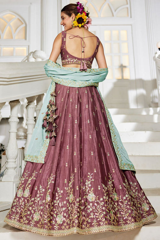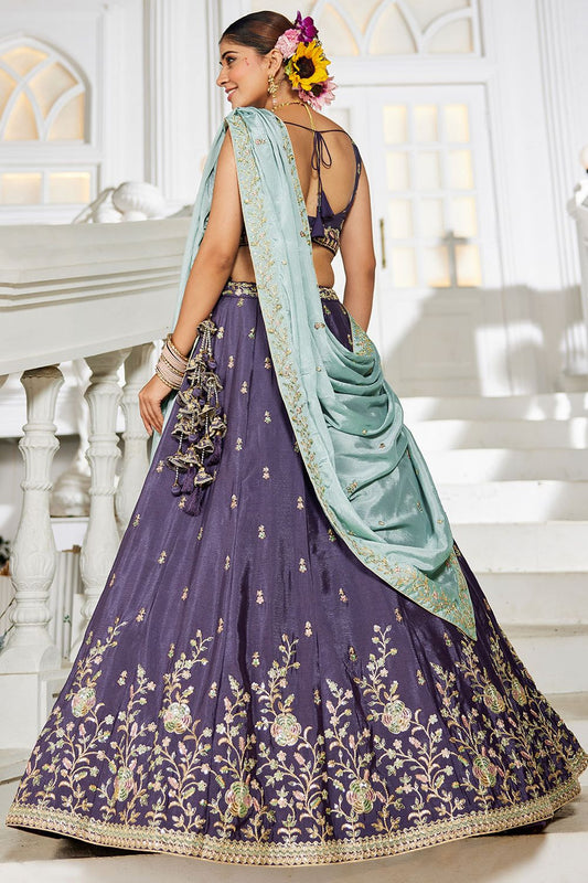 Regular price From £134.63 GBPRegular priceUnit price / per£149.63 GBPSale price From £134.63 GBP-10% OFFPurple Satin Silk Party Lehenga Choli SFFK28801