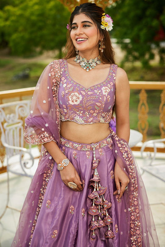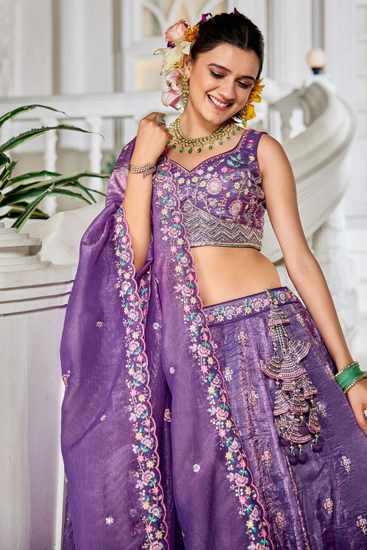 Regular price From £134.83 GBPRegular priceUnit price / per£164.63 GBPSale price From £134.83 GBP-18% OFFPurple Tissue Wedding Party Lehenga Choli SFFK28903