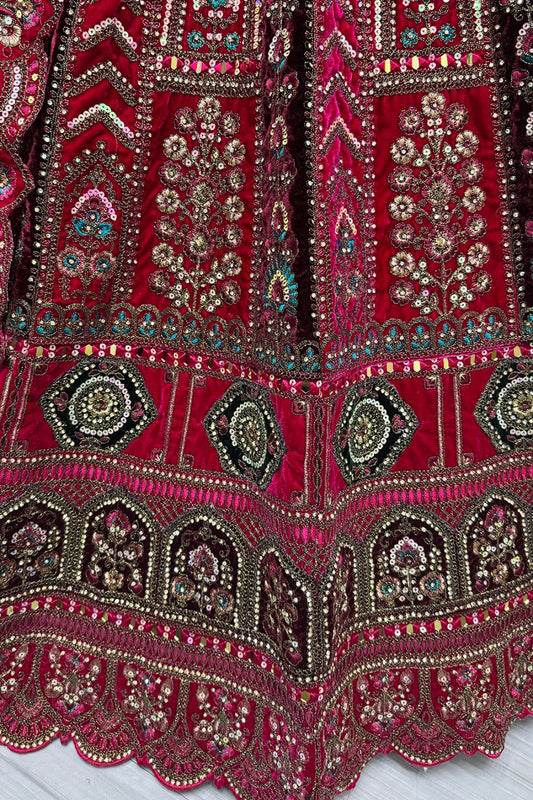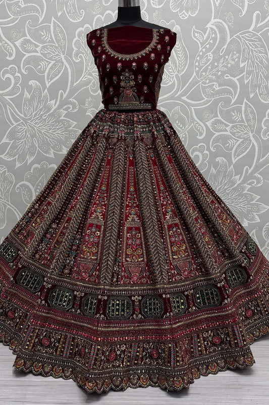 Regular price From £249.79 GBPRegular priceUnit price / per£295.16 GBPSale price From £249.79 GBP-15% OFFMaroon Velvet Bridal Lehenga Choli Diamante Mirror work SFANJ3054