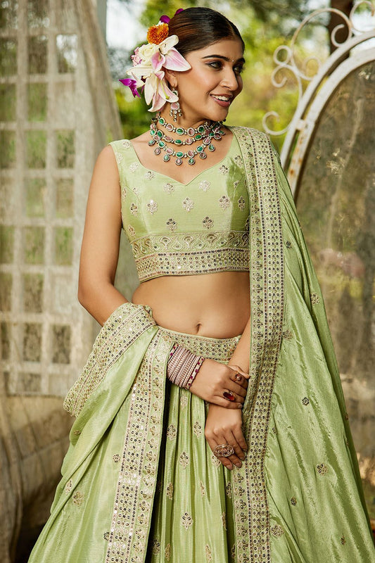 Regular price From £137.82 GBPRegular priceUnit price / per£185.17 GBPSale price From £137.82 GBP-25% OFFGreen Wedding Reception Chiffon Lehenga Choli In Chiffon SFFK28501