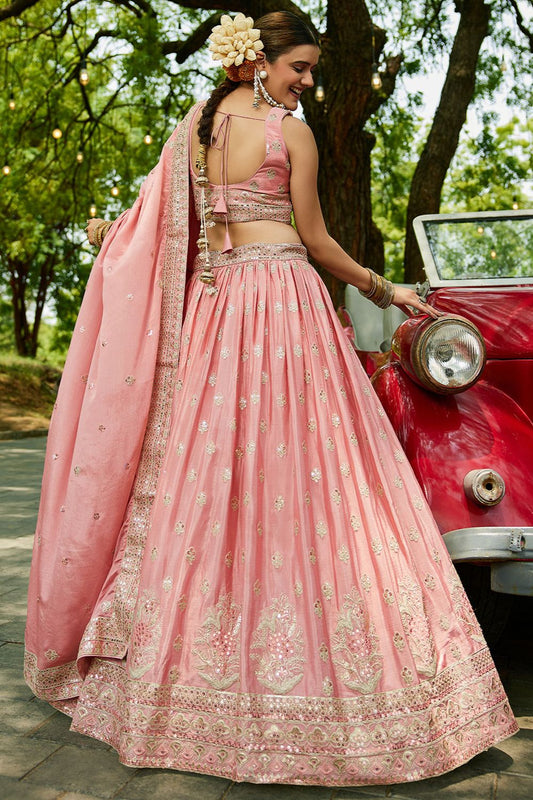 Regular price From £134.63 GBPRegular priceUnit price / per£146.83 GBPSale price From £134.63 GBP-8% OFFPink Satin Wedding Reception Lehenga Choli SFFK28702
