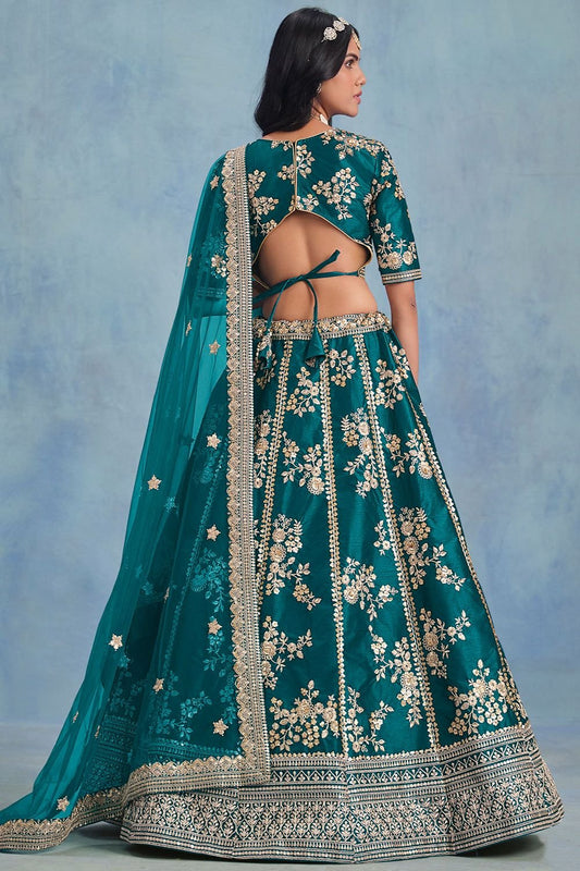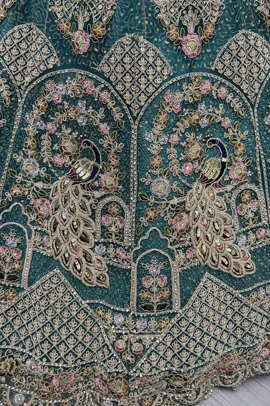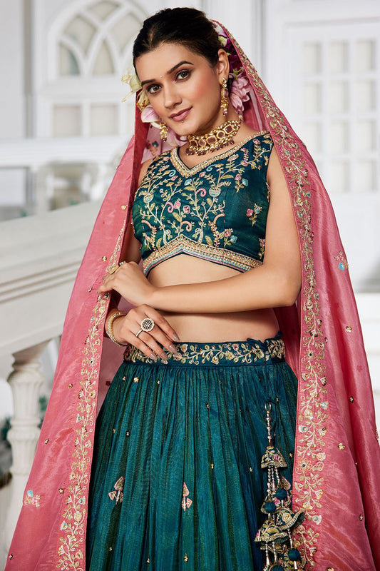Regular price From £96.45 GBPRegular priceUnit price / per£135.53 GBPSale price From £96.45 GBP-28% OFFTeal Bridal Wedding Silk Lehenga Choli SFDFS34801