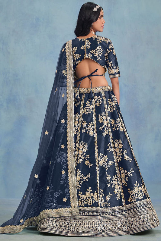 Regular price From £129.53 GBPRegular priceUnit price / per£155.15 GBPSale price From £129.53 GBP-16% OFFBlue Bridal Wedding Silk Lehenga Choli SFDFS34803