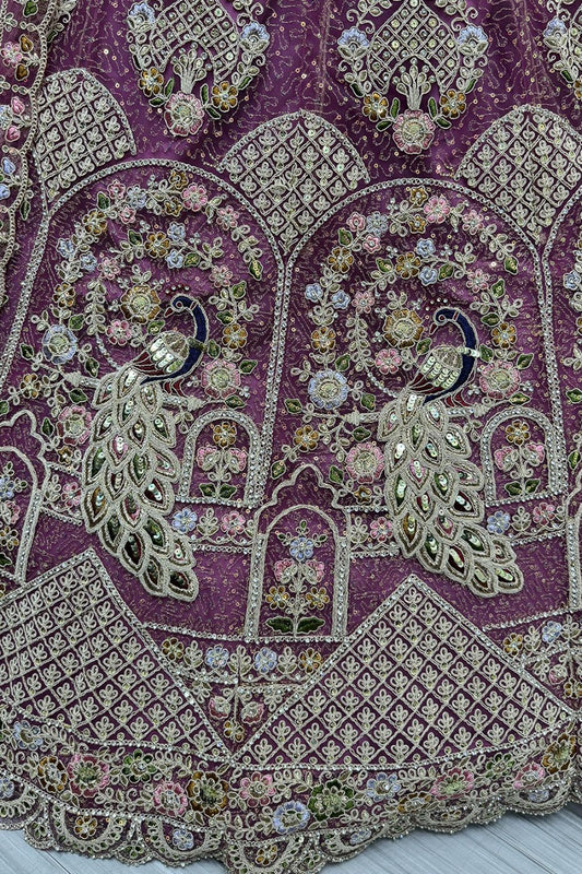 Regular price From £138.89 GBPRegular priceUnit price / per£164.63 GBPSale price From £138.89 GBP-15% OFFPurple Heavy Bridal Net Lehenga Choli SFANJ3056