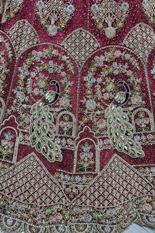 Regular price From £161.20 GBPRegular priceUnit price / per£164.63 GBPSale price From £161.20 GBP-2% OFFCrepe Pink Heavy Bridal Net Lehenga Choli SFANJ3057