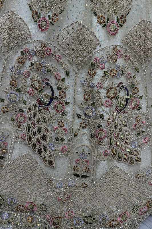 Regular price From £161.20 GBPRegular priceUnit price / per£164.63 GBPSale price From £161.20 GBP-2% OFFWhite Heavy Bridal Net Lehenga Choli SFANJ3059