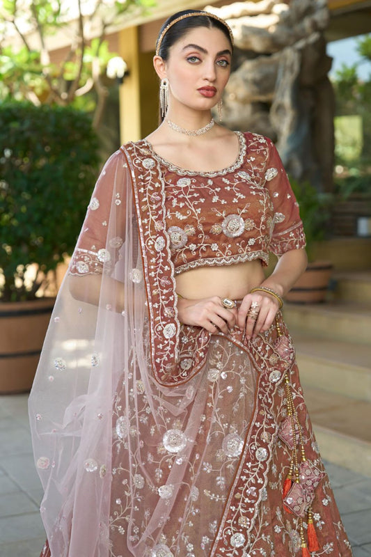 Regular price From £161.20 GBPRegular priceUnit price / per£176.20 GBPSale price From £161.20 GBP-8% OFFBrown Bridal Silk Lehenga Choli In Pure Viscose SFSA500001