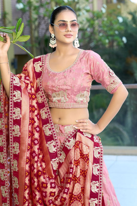 Regular price From £211.67 GBPRegular priceUnit price / per£240.67 GBPSale price From £211.67 GBP-12% OFFPink Bridal Silk Lehenga Choli In Pure Viscose SFSA500003
