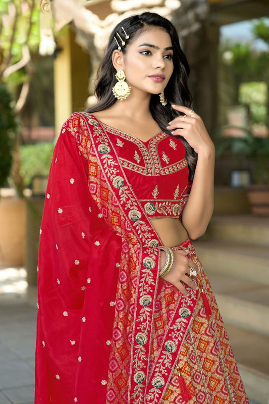 Regular price From £201.57 GBPRegular priceUnit price / per£240.67 GBPSale price From £201.57 GBP-16% OFFRed Bridal Silk Lehenga Choli In Pure Viscose SFSA500004