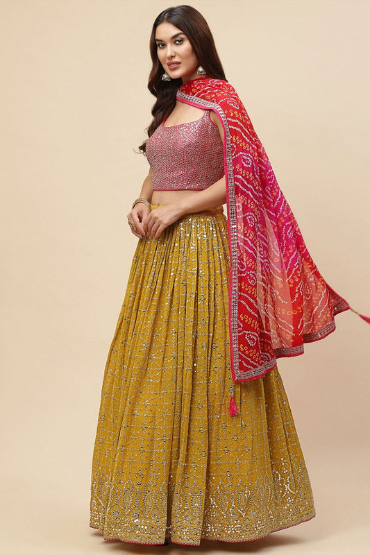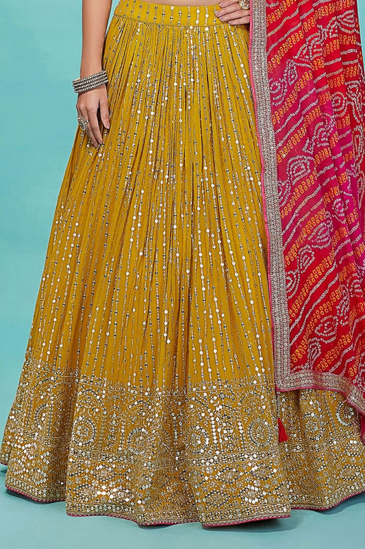Regular price From £100.55 GBPRegular priceUnit price / per£225.10 GBPSale price From £100.55 GBP-55% OFFYellow Sangeet Georgette Lehenga Choli With Floral Dupatta SFZC4703