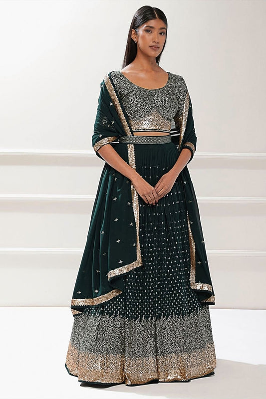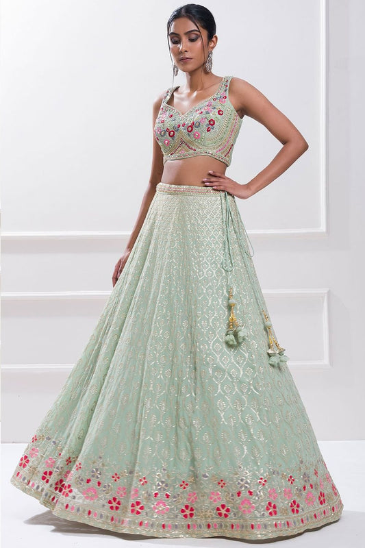 Regular price From £110.68 GBPRegular priceUnit price / per£135.53 GBPSale price From £110.68 GBP-18% OFFGreen Sangeet Georgette Lehenga Choli With Floral Dupatta SFZC4707