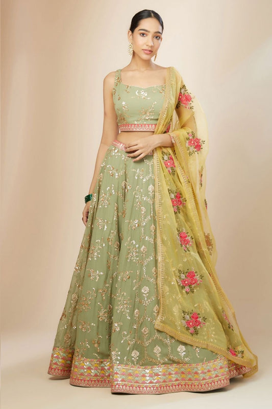 Regular price From £181.35 GBPRegular priceUnit price / per£225.10 GBPSale price From £181.35 GBP-19% OFFGreen Sangeet Georgette Lehenga Choli With Floral Dupatta SFZC4701