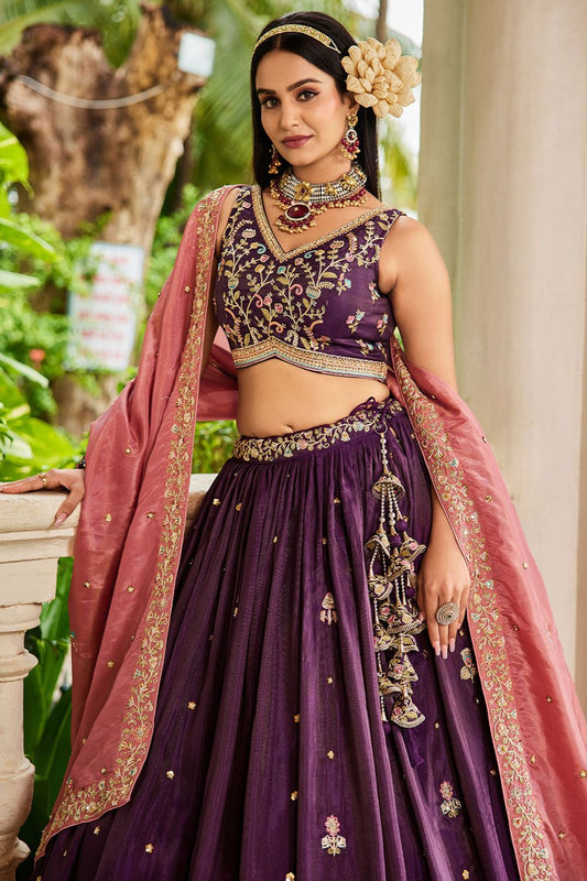 Regular price From £129.53 GBPRegular priceUnit price / per£135.53 GBPSale price From £129.53 GBP-4% OFFPurple Bridal Wedding Silk Lehenga Choli SFDFS34802