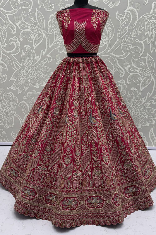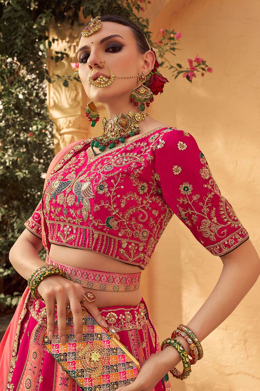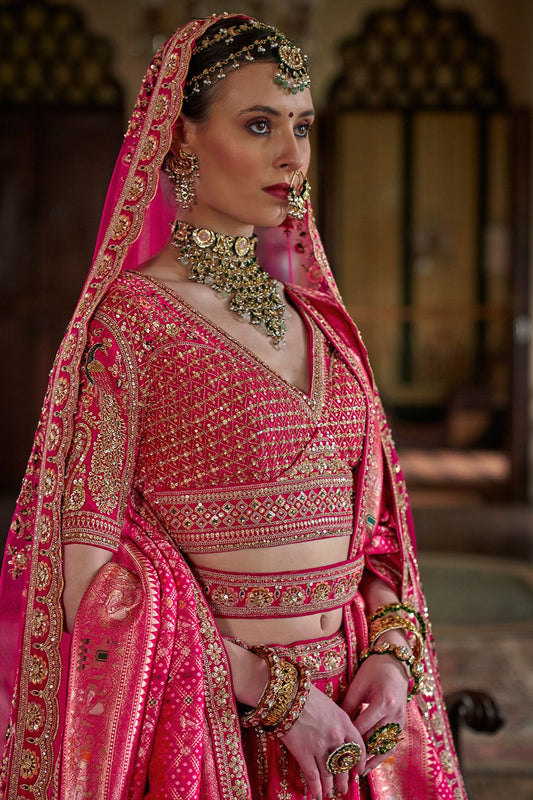 Regular price From £388.66 GBPRegular priceUnit price / per£458.09 GBPSale price From £388.66 GBP-15% OFFRani Pink Silk Royal Bridal Lehenga Choli SFSJDN33904